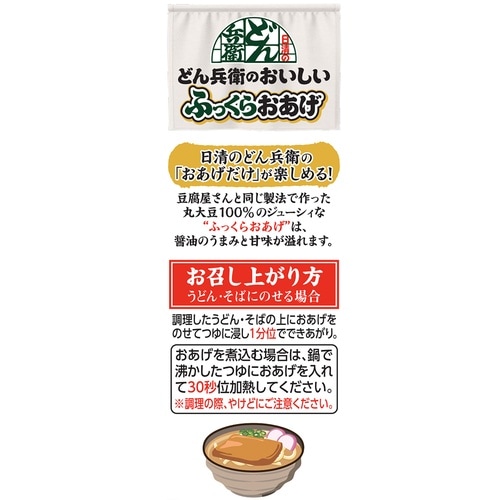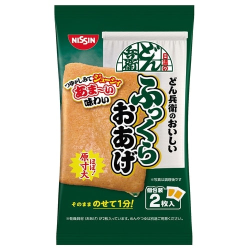 どん兵衛のあの“おあげ”だけ。うどんやそばにのせるだけでいつでも“ふっくらジューシィおあげ”が楽しめる!使い勝手も良い個包装2枚入り。 |