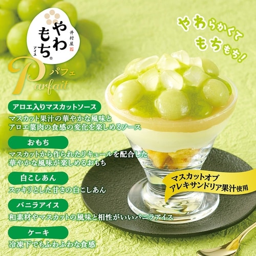 まるでマスカット大福のような味わいを楽しめる贅沢パフェアイス。専門店のパフェのような見た目と味わいにこだわりました。 |