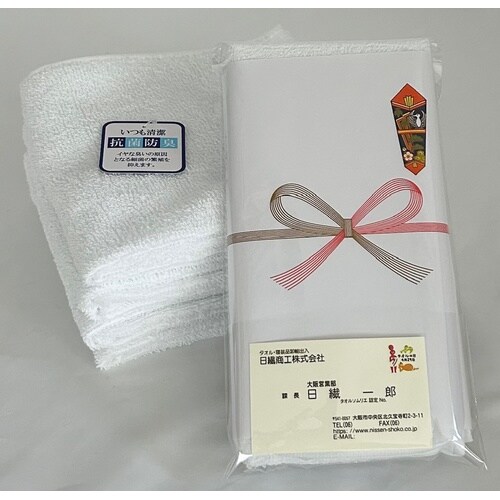抗菌加工をした白のタオルです。様々用途でお使い頂ける「無地熨斗付きタオル」です。袋には名刺を入れられるポケットがついております。 |