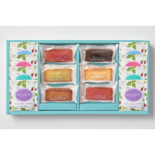 ストロベリー、プレーン、イチジク、ピスタチオ、チョコの5種類のフィナンシェと、4種類のティーバッグをセットにしました。 |