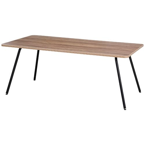 遊び心をプラスしたデザインのテーブル+ベンチです。デザインのトレンドであるスラント脚形状を採用し、広い下肢空間を実現。アクセントとして積層柄エッジを取り入れています |