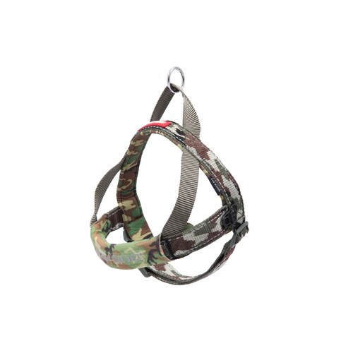 首から通して、脇の下でバックルを留めるだけで、簡単に素早く装着可能なハーネス |