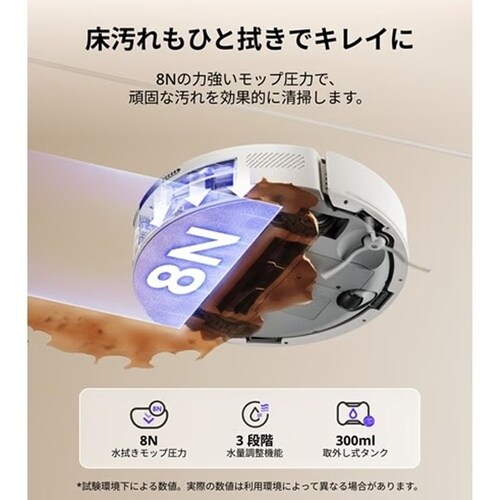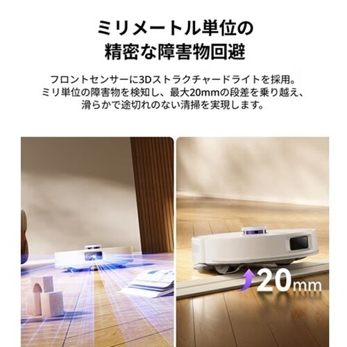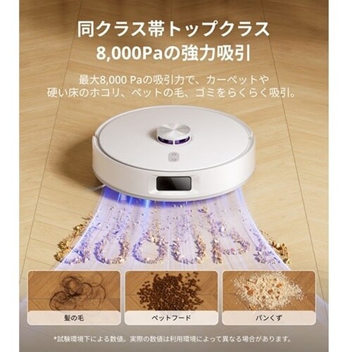大容量3.5Lダストバッグで約180日ゴミ捨て不要。高性能障害物回避、吸引と水拭き対応、LDS高速マッピング、アプリ連携、最大8,000Pa吸引力を搭載。 |