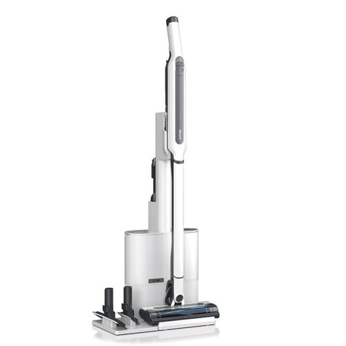 あらゆる床も家具上もしっかりきれいに。パワフルな掃除力とシンプル操作で、手軽に使えるコードレススティッククリーナー。 都度のゴミ捨てから解放される自動ゴミ収集ドック付きモデル |