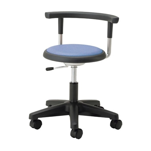 製品サイズ:W510×H590ー680mm・キャスターサイズ:50mm・キャスター仕様:ナイロン双輪・2コストッパー付・座面サイズ:φ360×H390ー480mm・本体重量:7.1kg・材質:脚部=ポリプロピレン・スチール、張地=ビニールレザー・材質機能:ビニールレザー=準耐アルコール・耐次亜塩素酸・抗菌・防汚・難燃・個装入数:1台