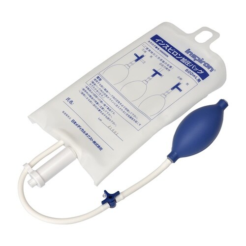 ラテックスフリーの加圧バッグです。バッグ背面にプラスチック製のフックが付いているので、輸液バッグが吊り下げやすく、操作性に優れています。 |