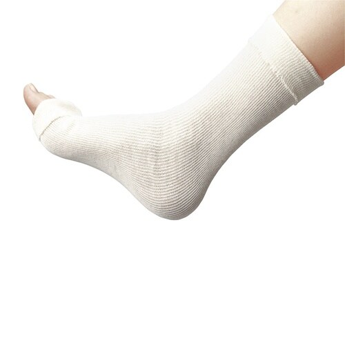 高品質の純綿糸を使用。吸湿性が高いギプス用下巻チューブ包帯です。石膏ギプスにも使用可能です。