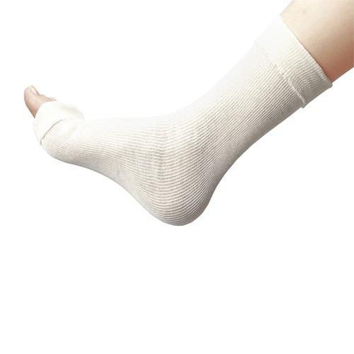 高品質の純綿糸を使用。吸湿性が高いギプス用下巻チューブ包帯です。石膏ギプスにも使用可能です。 |