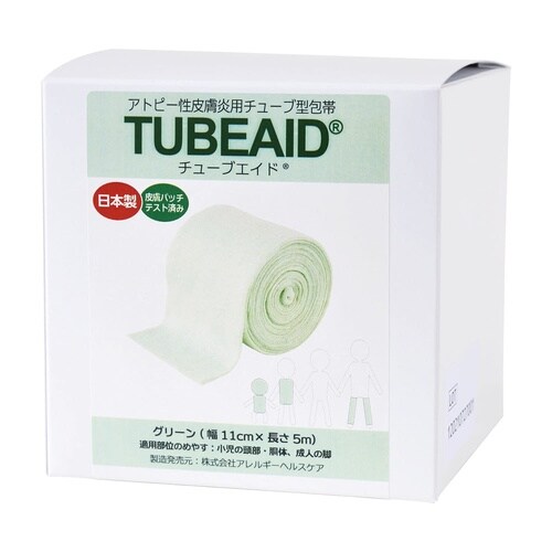 アトピー性皮膚炎等かゆみを伴う皮膚疾患において掻被行為から肌を防護することを目的とし、全身に対して適用可能なチューブ型包帯です。