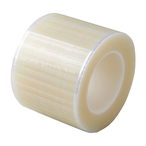 適度な粘着力で、手で触れる場所をカバーすることのできる粘着性フィルム。15cmごとにカットしやすい点線が入っています。 |