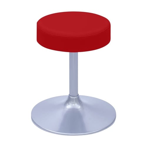 患者様にも安心感を与える安定性の高い直径36cmの円盤脚チェアー。床面にキズを付けない滑り止め効果のあるポリエチレンリング付き。