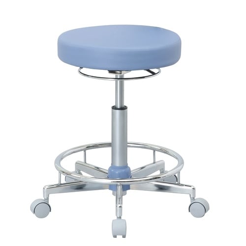 リングレバーで高さ調節できるハイタイプのメディカルチェア。耐薬品、抗菌タイプのPVCシート生地。 |