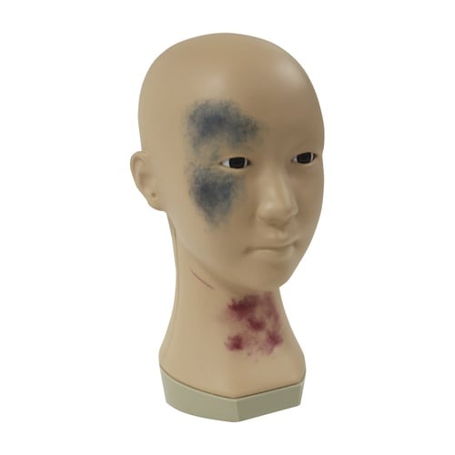 赤斑、シミ、傷痕、タトゥー痕の肌を再現しています。繰り返しのメイク練習が可能です。 |