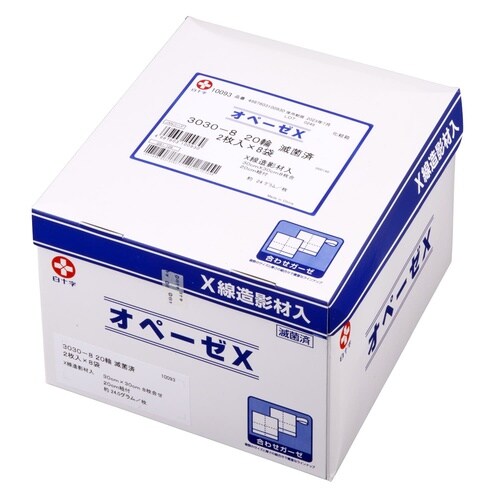 レントゲン撮影時に、より鮮明に写る様に造影剤の量を増やしたX線造影材入の合わせガーゼです。血液を吸収した術中でも目視で確認しやすい黒色X線造影材を使用。 |