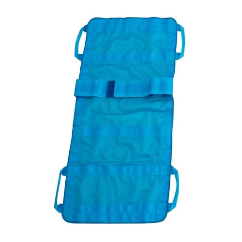 手にやさしいグリップスタイルで安全に移動可能な軽量携帯型のナイロンメッシュ担架です。入浴時の介護など水に濡れる場面にもお使いいただけます。