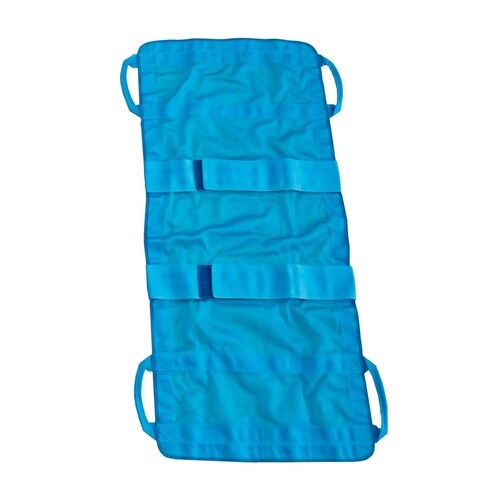手にやさしいグリップスタイルで安全に移動可能な軽量携帯型のナイロンメッシュ担架です。入浴時の介護など水に濡れる場面にもお使いいただけます。 |