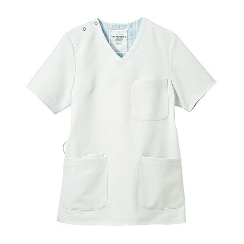 ベーシックなスクラブはジェラート ピケオリジナルのカラーバリエーション。右腰の小ポケットはペンがポケット内で倒れないサイズにすることで取り出しやすくなっています。