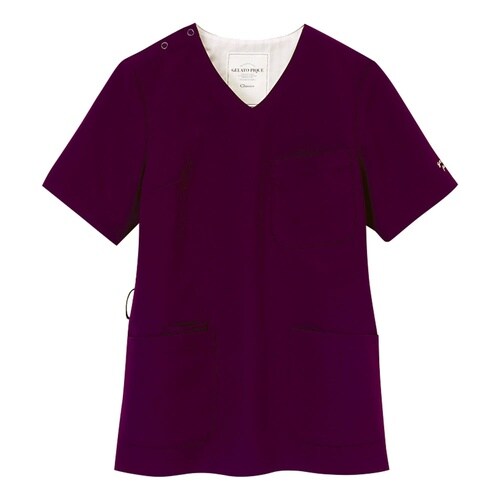 ベーシックなスクラブはジェラート ピケオリジナルのカラーバリエーション。右腰の小ポケットはペンがポケット内で倒れないサイズにすることで取り出しやすくなっています。