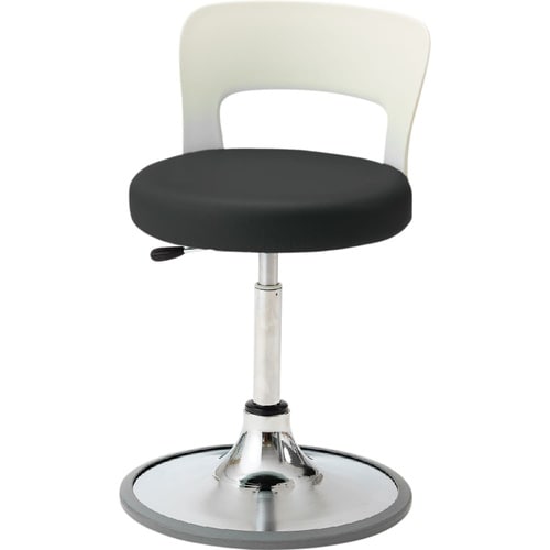安定感のある円型ベースで、清潔感のあるデザインの背付きクランケチェア座高ガス上下調節。 |