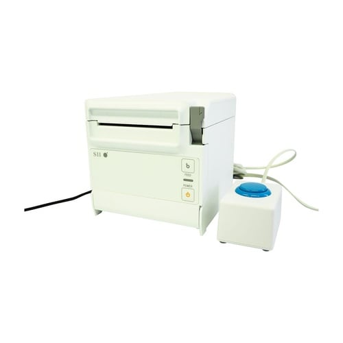 ボタンを押すだけで簡単に発券できるシンプルなボタン式発券機。プリンタ背面に設置する小型の発券ボックス(コントローラー)を通じて単独で動作。 |
