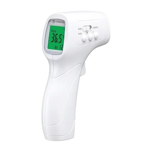 肌に直接触れないため衛生的に検温できます。使い方は簡単で、約1秒で検温完了! |