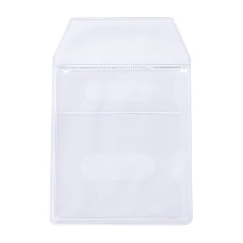 カラー:透明・製品サイズ:縦150×横100mm・収納部寸法:縦72×横91mm・本体重量:16.0g・材質:PVC(塩化ビニル)・個装入数:5枚