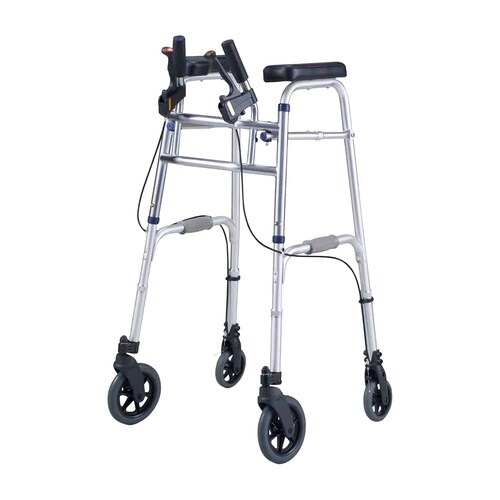 軽量で折りたたみができる馬蹄型歩行器です。全幅は60cmなので、ご自宅などでも使用しやすいサイズです。 |