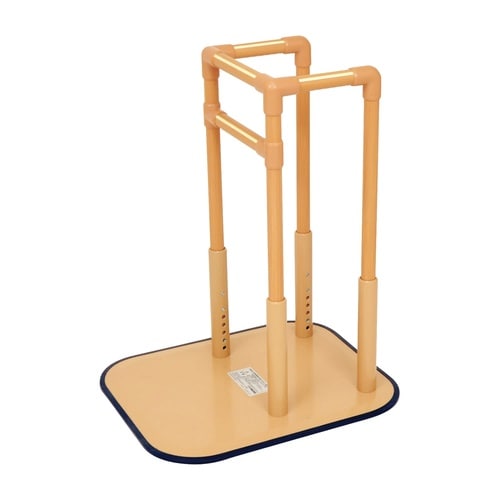歩行補助やいすやべっどからの立ち上がりを安全にサポートする手すりです。ベッドサイド、壁際などシチュエーションに合わせて、手すりの位置を変えられます。