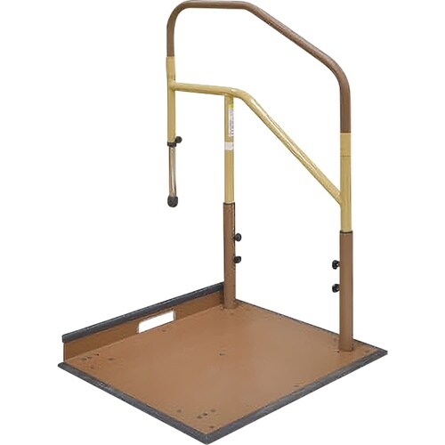 上がりかまちの昇降を安全にサポートします。手すりは握りやすいφ34mm、水平部が長くて安心です。高さは使用される方に合わせて調整可能。ベースプレート表面にはすべり止め加工付です。