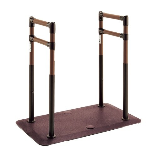 製品サイズ:W800×D450×H900mm・本体重量:20.6kg・材質:手すり=(被膜)半硬質樹脂(芯材)アルミパイプ、ジョイント=アルミ合金、ベースプレート=スチール・樹脂被覆、調整ゴム=合成ゴム、支柱・座金=ステンレス・個装入数:1台