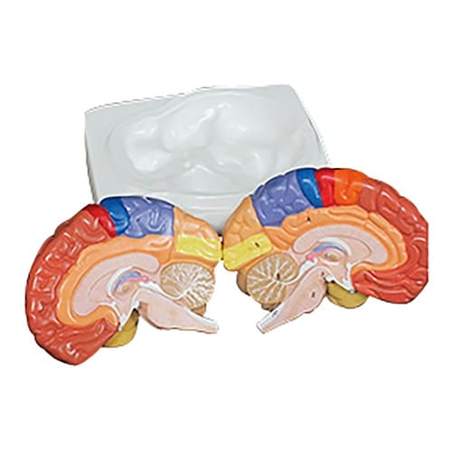 脳を実物大で再現し、表面に色分けのペイントを施した模型。 |