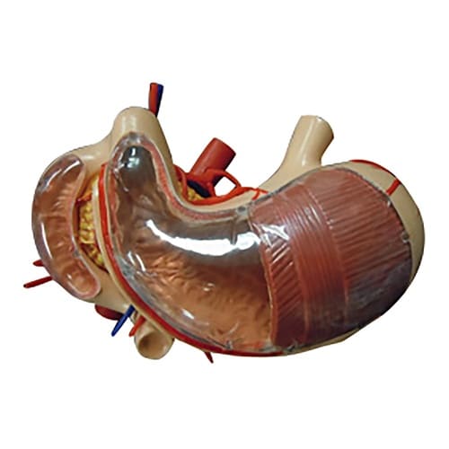 胃、十二指腸、膵臓および腹部大動脈を2/3サイズにした模型。 |