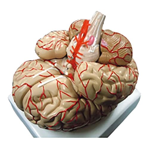 大脳、小脳、間脳、中脳、橋、延髄が実物大で精密に再現された脳模型。 |