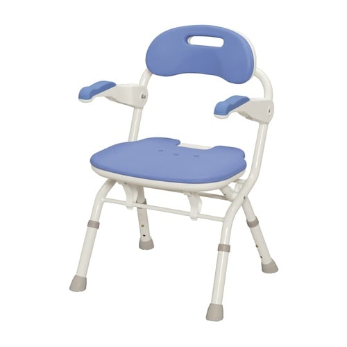 片手で折りたためる転倒予防のためのシャワーベンチです。一人入浴でも介助入浴でも身体を支えながら折りたためます。 |
