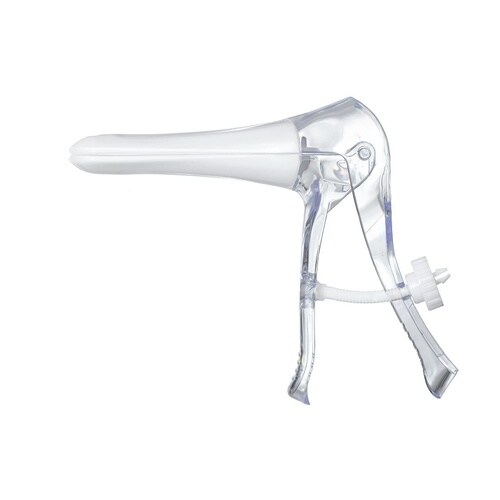 単回使用のプラスチック製膣鏡。 ネジ式ロックなので、ステンレス製膣鏡と同じ操作性です。 |