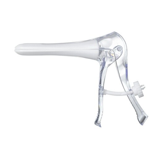 単回使用のプラスチック製膣鏡。 ネジ式ロックなので、ステンレス製膣鏡と同じ操作性です。 |
