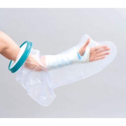 シャワー浴時にギプスや副木で固定した部位をカバーし水濡れから保護開口部は伸縮性のあるシリコーンを使用しているため、水が入りにくく水濡れの悩みに対応