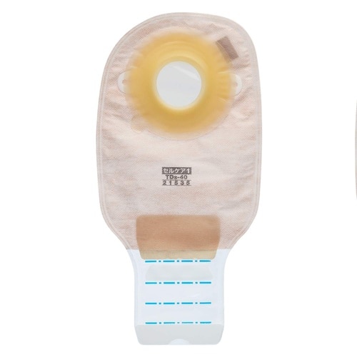 単品系(ワンピース)装具。セラミド配合の皮膚保護剤を全面に使用。面板はセーフティプレート搭載でストーマ周囲皮膚を押さえ、便漏れリスクを低減します。便排出口は固形−軟便に適したクリップレスタイプです。