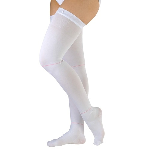 安静時の静脈還流を安全、快適にサポートするストッキングタイプの弾性ストッキング股下丈タイプで、大腿部シリコーンによりずり落ちを軽減します。