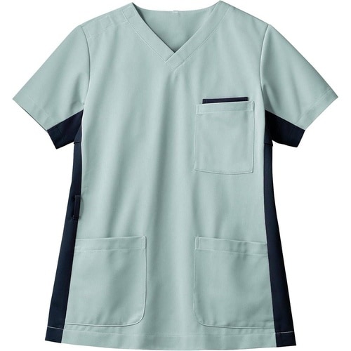制菌透け防止吸汗速乾制電防汚加工を付与Vゾーンネック仕様の立体裁断で動きやすく、脇下のベンチレーションで快適。