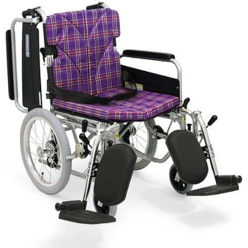カワムラサイクル 車いす(介助用・アルミ製)背折れ式 KA816−38ELB−LO 紫チェックA11 A0AT-7123