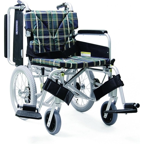 カワムラサイクル 車いす(介助・アルミ製)背折れ式 KA816−40B−M 緑チェックA9 A0AT-7168
