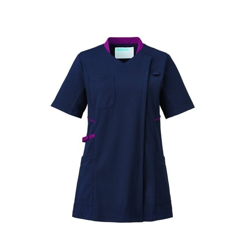 レディススクラブジャケット 半袖 986−48(ネイビーXプラム) LL