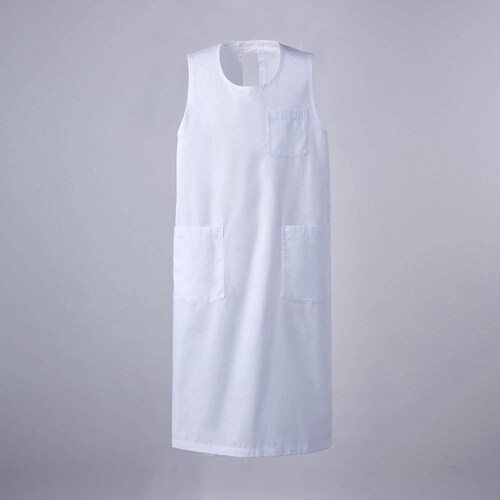 簡単に着脱できて、腕や肩が動かしやすいノースリーブタイプです。ポケットは左胸に1つと、両脇に2つ。右脇ポケットの内側にはペン差しポケット付きで便利。 |