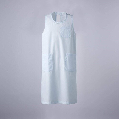 簡単に着脱できて、腕や肩が動かしやすいノースリーブタイプです。ポケットは左胸に1つと、両脇に2つ。右脇ポケットの内側にはペン差しポケット付きで便利。 |