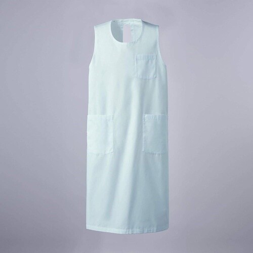 簡単に着脱できて、腕や肩が動かしやすいノースリーブタイプです。ポケットは左胸に1つと、両脇に2つ。右脇ポケットの内側にはペン差しポケット付きで便利。 |