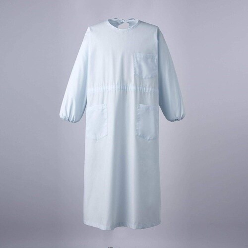 簡単に着脱できて、しっかりカバーできる長袖タイプの予防衣です。袖口にはゴムが入っており、使い勝手のいい仕様です。