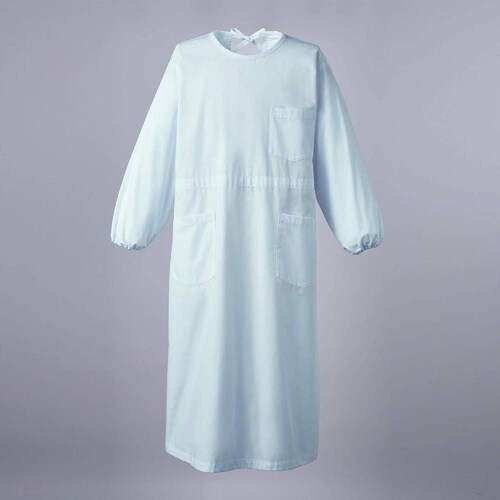 簡単に着脱できて、しっかりカバーできる長袖タイプの予防衣です。袖口にはゴムが入っており、使い勝手のいい仕様です。