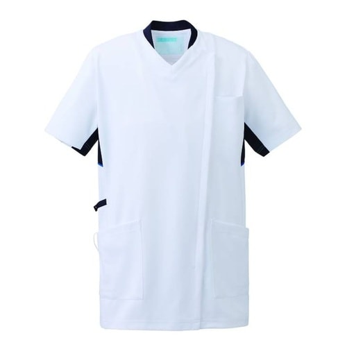 KAZEN スクラブジャケット 半袖(男女兼用) 988−18(ホワイトXネイビー) S A0AT-7489