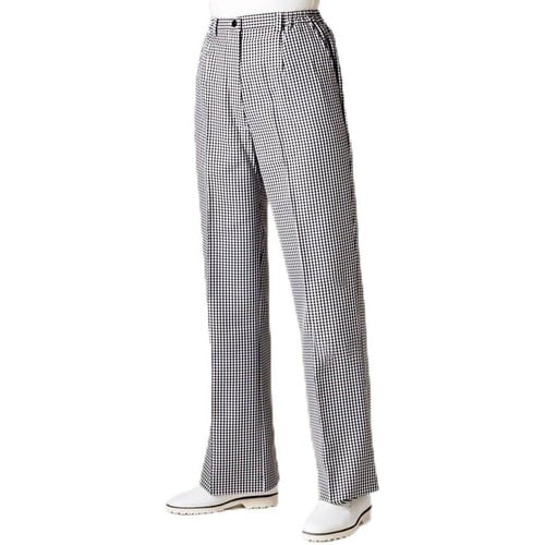 ギンガムチェック(ブラック×ホワイト)のレディスパンツ。ノータック、両脇ゴム。